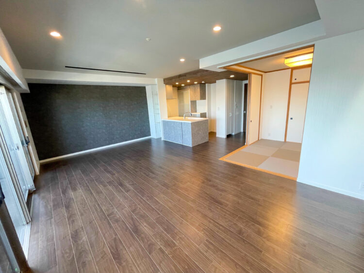 | 詳細情報 | 高級タワーマンションのリフォーム。 新築当時の仕様を一新し、最新のキッチンやUBを取り付けました。 またリビングにはエコカラットを貼り、間接照明で高級感を演出しました。 |
