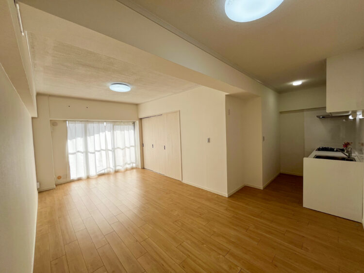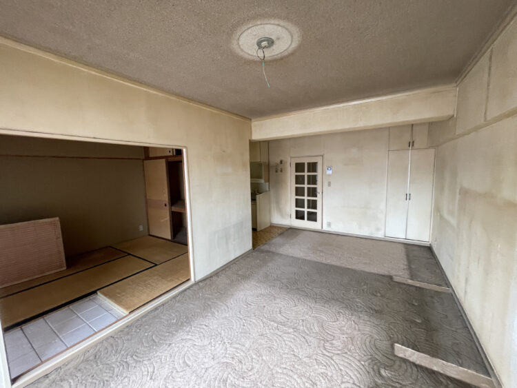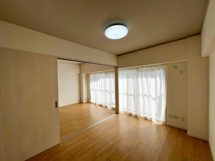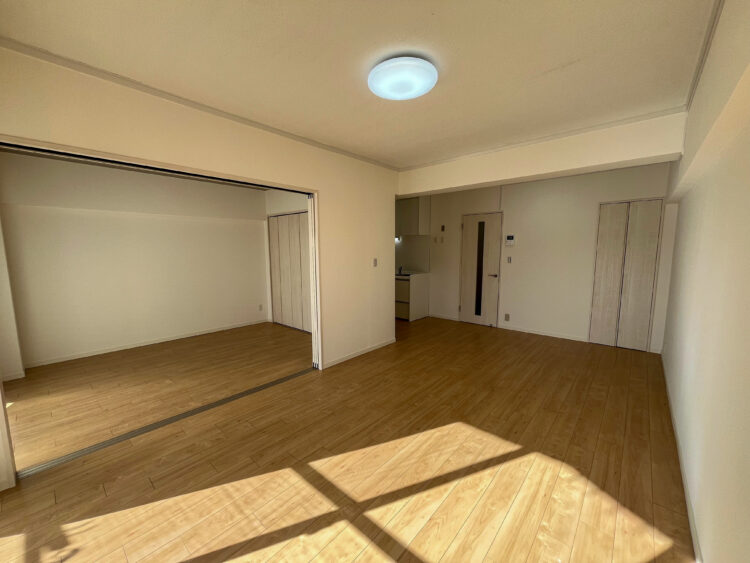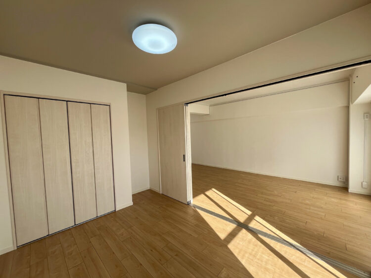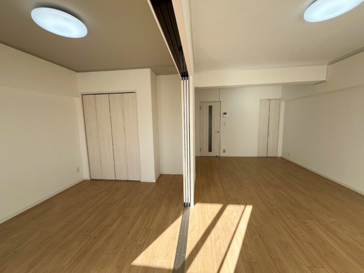 経年劣化に伴い修繕を行い、また同時にLDKを拡張し3本引き戸で仕切れるような間取りに変更しました。