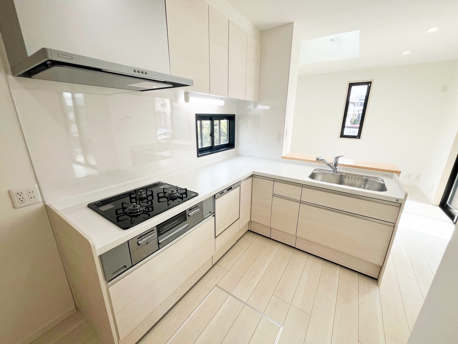 | 詳細情報 | 戸建のリフォーム工事を行いました。 部屋全体を白やベージュなどの明るいカラーで統一して空間を広く見せました。 またキッチン上部の壁や収納の扉、部屋を仕切る壁を取り払い、閉鎖感を無くしました。 空間をうまく利用してお洒落なお家生まれ変わりました。 |