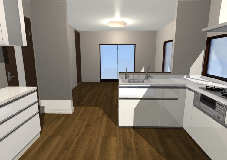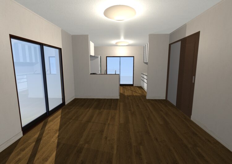 | 詳細情報 | 元々和室だった部屋をリビングと繋げ、LDKとして拡張しました。 またL字型にし、キッチンからリビングを見渡せるようにしました。 |