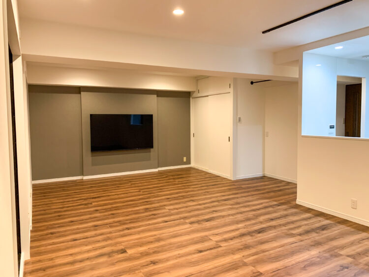 | 担当者コメント | 何度もお打合せさせていただき、とても素敵な空間ができました。 壁掛けTVの取付方法やひとつひとつの棚の高さなど、一緒になって作り上げさせていただいた印象の強い工事でした。 今後とも末永く、よろしくお願いします。 |