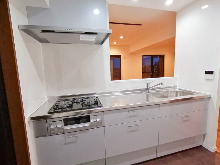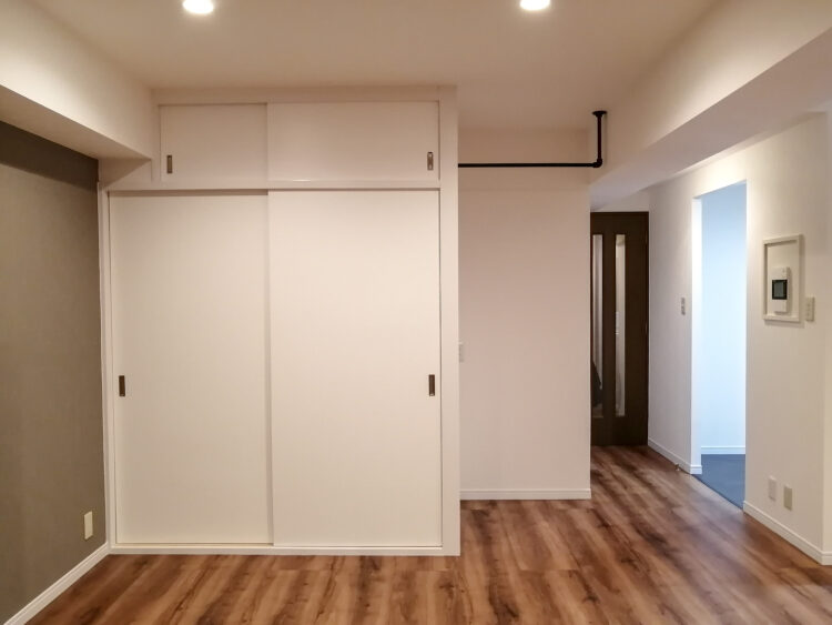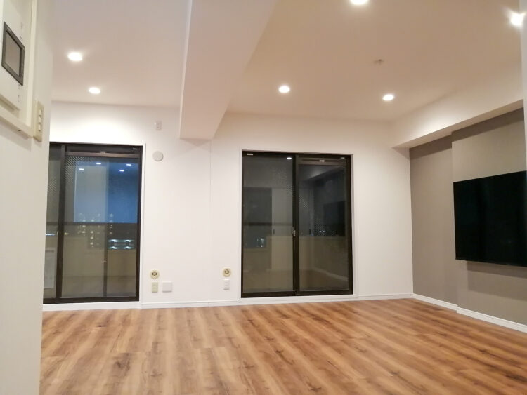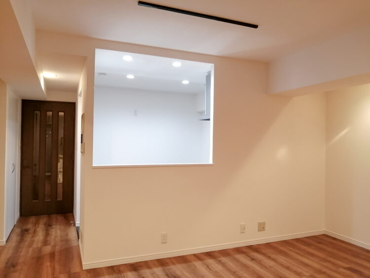 | 詳細情報 | 全体的にモノクロにしたいというご要望をいただき、建具を白で統一し、床はダーク色にしました。 キッチンは明るく、LDKはバーのような少し落ち着いた雰囲気ということで照明の個数や昼白色・電球食の2種類で調整しました。 またアクセントクロスはグレー系を取り入れ、落ち着いた大人の空間に。 |