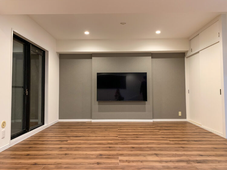 | 担当者コメント | 何度もお打合せさせていただき、とても素敵な空間ができました。 壁掛けTVの取付方法やひとつひとつの棚の高さなど、一緒になって作り上げさせていただいた印象の強い工事でした。 今後とも末永く、よろしくお願いします。 |