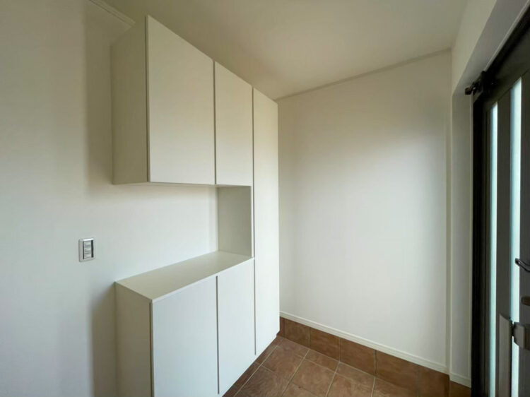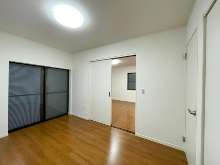 床色やフロアタイルの色も既設建具に合う色味を選び、もともと和室だったお部屋の建具は壁紙と同じ白いものにすることで、建具交換しても統一感のある内装になりました。
