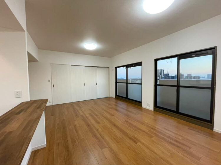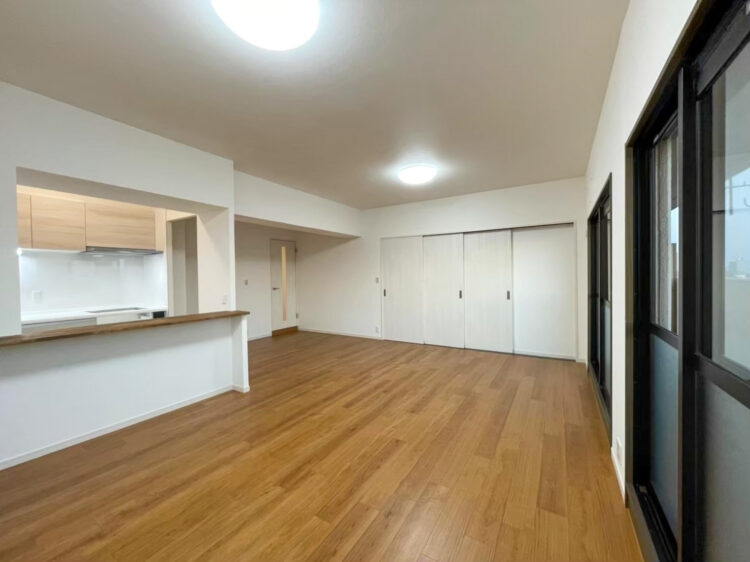 | 詳細情報 | LDKを広くしたいとのご要望でしたので、LDKに隣接する洋室の間仕切りを撤去し、キッチンの間仕切りを開口にする間取りをご提案しました。 また、和室は3枚引き込み戸にて間仕切りすることで扉を開くとさらに広いLDKとしても使えます。 |