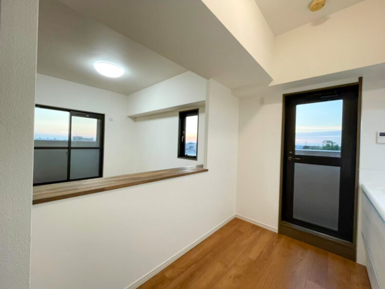 | 担当者コメント | この度はリフォームをご用命いただき、ありがとうございます。 対面キッチンのご要望もありましたが、配管スペースの為に床上げをすると天井高が低くなってしまうため、対面キッチンにできませんでした。 キッチン背面の間仕切りを開口にしカップボード設置できるスペースにすることで、対面のように使っていただける間取りになりました。 また、ホワイトの建具にすることで天井高を高く見せています。 |