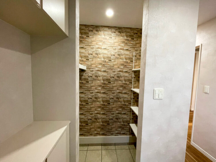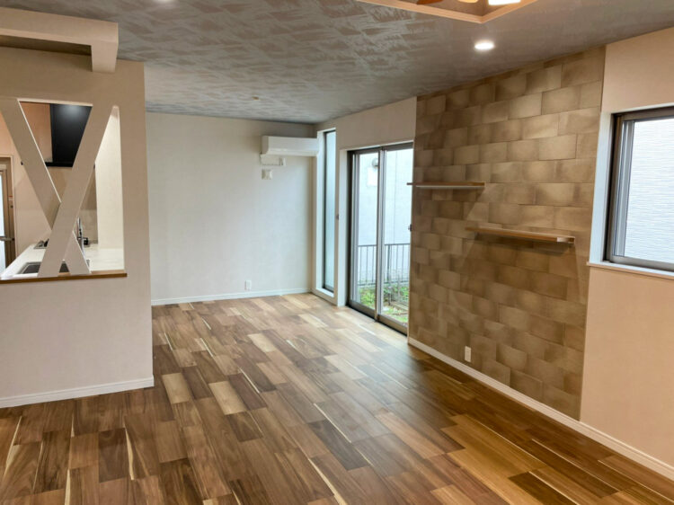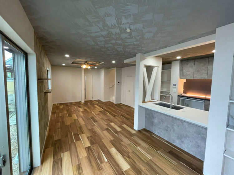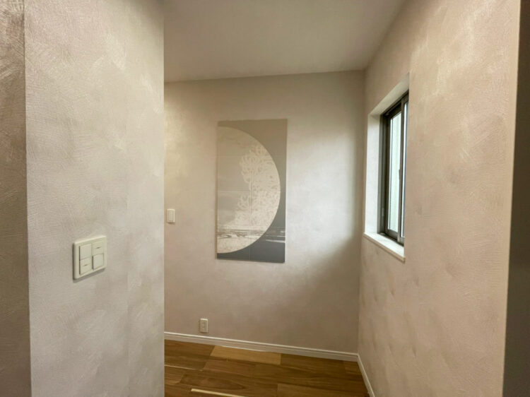 また玄関に絵のようなエコカラット、各お部屋にたくさんの種類のクロスを使い華やかな空間に仕上がりました。